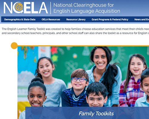 The English Learner Family Toolkit was created to help families choose education services that meet their child’s needs. U.S. educators, elementary and secondary school teachers, principals, and other school staff can also share the toolkit as a resource for English learners and their families.
